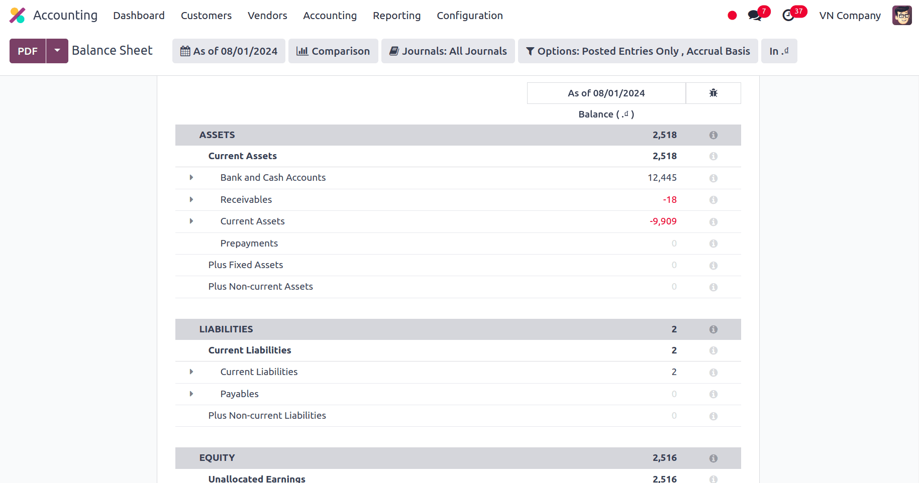 - Báo cáo tài chính chính theo mẫu Việt Nam: Các báo cáo như bảng cân đối kế toán, báo cáo kết quả kinh doanh và báo cáo lưu chuyển tiền tệ trong Odoo mặc định được trình bày theo dạng báo cáo quản trị, cấu trúc bắt buộc của Bộ tài chính Việt Nam được trình bày không chính xác.